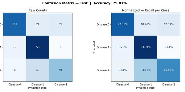 If both medical treatments are given at once, then it could be a good diagnostic method as it is catching about 87% of the time when either pneumonia is present. Disease 0 - Normal, Disease 1 - Bacteria, Disease 2 - Virus